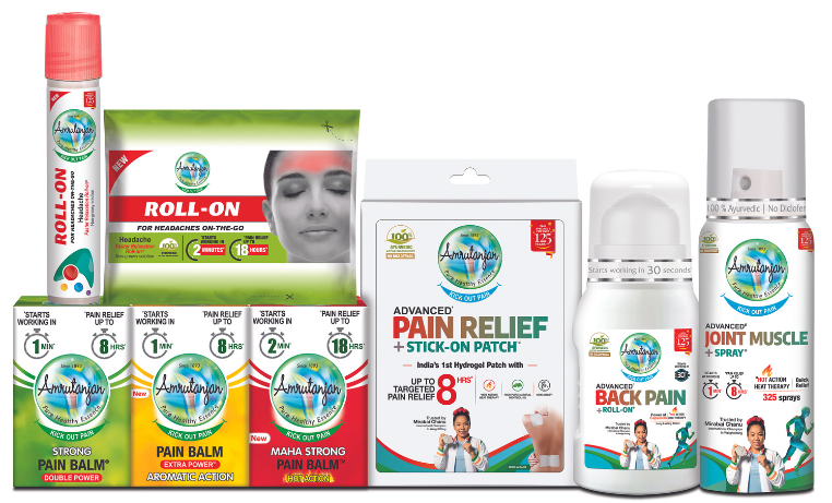 ശാസ്ത്രീയമായ ക്ലിനിക്കൽ പരീക്ഷണങ്ങളുടെ അടിസ്ഥാനത്തിൽ മികച്ച വേദന സംഹാരി ഉൽപ്പന്നങ്ങൾ ബ്രാൻഡ് ലഭ്യമാക്കുന്നു. തലയ്ക്കും ശരീരവേദനയ്ക്കും റോൾ-ഓൺ പോലുള്ള നൂതന രീതികൾ അവതരിപ്പിക്കുന്നതിലും ഉപഭോക്താക്കൾക്ക് സൗകര്യപ്രദമായ രീതികൾ ലഭ്യമാക്കുന്ന ഒരു ഹൈഡ്രോജൽ പെയിൻ പാച്ച് ആദ്യമായി അവതരിപ്പിക്കുന്നതും അമൃതാഞ്ജൻ ഹെൽത്ത്കെയറാണ്. ദോഷകരമായ പാർശ്വഫലങ്ങൾ ഉണ്ടാക്കുകയും പരിസ്ഥിതിക്ക് അപകടമുണ്ടാക്കുകയും ചെയ്യുന്ന ഡിക്ലോഫെനാക് പോലുള്ള രാസവസ്തുക്കളുടെ ഉപയോഗത്തിനെതിരെ ഉറച്ച നിലപാട് കമ്പനിക്കുള്ളത്.