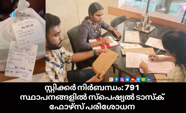 സ്റ്റിക്കർ നിർബന്ധം: 791 സ്ഥാപനങ്ങളിൽ സ്പെഷ്യൽ ടാസ്ക് ഫോഴ്സ് പരിശോധന... Read More