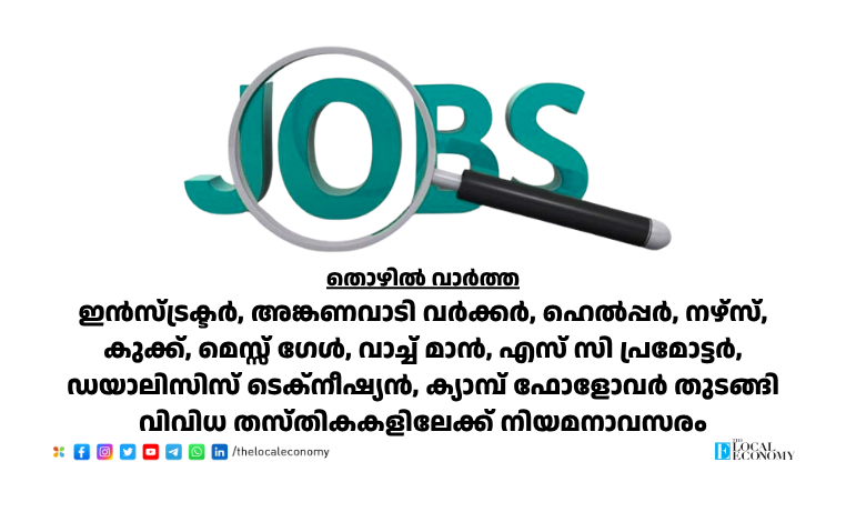 തൊഴിൽ വാർത്ത അപ്ഡേറ്റുകൾ ദിവസവും മുടങ്ങാതെ ലഭിക്കുവാൻ ഞങ്ങളുടെ വാട്ട്സാപ്പ് ഗ്രൂപ്പിൽ https://chat.whatsapp.com/IZAO7EDaYvsFNyyudtePy6 ഈ ലിങ്കിലൂടെജോയിൻ ചെയ്യുകയോ 8086441054 എന്ന നമ്പറിലേക്ക് വാട്ട്സാപ്പിൽ മെസേജ് അയക്കുകയോ ചെയ്യുക.