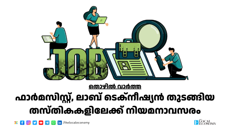ഫാർമസിസ്റ്റ്, ലാബ് ടെക്നീഷ്യൻ തുടങ്ങിയ തസ്തികകളിലേക്ക് നിയമനാവസരം... Read More