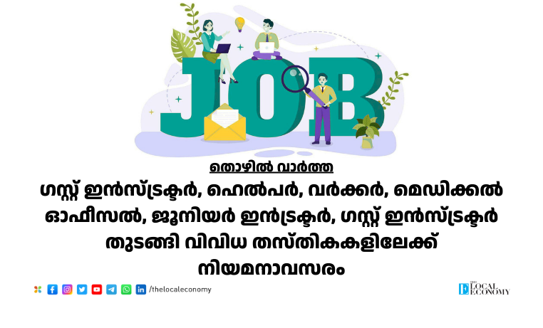 തൊഴിൽ വാർത്ത അപ്ഡേറ്റുകൾ ദിവസവും മുടങ്ങാതെ ലഭിക്കുവാൻ ഞങ്ങളുടെ വാട്ട്സാപ്പ് ഗ്രൂപ്പിൽ https://chat.whatsapp.com/IZAO7EDaYvsFNyyudtePy6 ഈ ലിങ്കിലൂടെജോയിൻ ചെയ്യുകയോ 8086441054 എന്ന നമ്പറിലേക്ക് വാട്ട്സാപ്പിൽ മെസേജ് അയക്കുകയോ ചെയ്യുക.