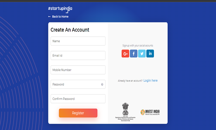 ഇന്ത്യാ ഗവണ്മെന്റിന്റെ സ്റ്റാര്ട്ടപ്പായി അംഗീകരിക്കപ്പെടുന്നതിന്, നിങ്ങള് സ്റ്റാര്ട്ടപ്പ് ഇന്ത്യ വെബ്സൈറ്റില് രജിസ്റ്റര് ചെയ്യേണ്ടതുണ്ട്. സ്റ്റാര്ട്ടപ്പ് ഇന്ത്യ പോര്ട്ടലില് രജിസ്റ്റര് ചെയ്യുന്നതിന് ചുവടെയുള്ള ഘട്ടങ്ങള് പാലിക്കുക.