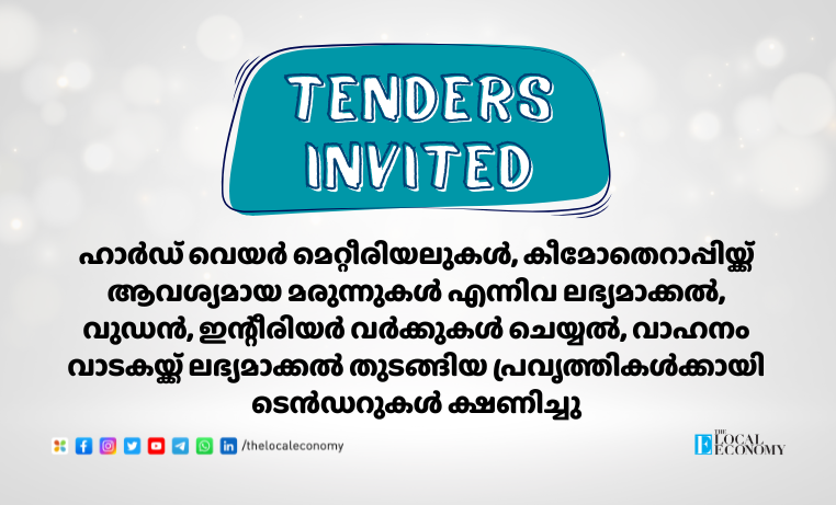 ജില്ലാ വ്യവസായ കേന്ദ്രത്തിലെ ഔദ്യോഗിക ആവശ്യങ്ങൾക്കായി 2025-26 സാമ്പത്തിക വർഷത്തിൽ ആറ് മാസ കാലയളവിലേക്ക് വാഹനം വാടകയ്ക്ക് എടുക്കുന്നതിന് ക്വട്ടേഷൻ ക്ഷണിച്ചു. നവംബർ ആറിന് വൈകിട്ട് മൂന്നിന് മുമ്പായി ക്വട്ടേഷനുകൾ ജനറൽ മാനേജർ, ജില്ലാ വ്യവസായ കേന്ദ്രം, എറണാകുളം എന്ന വിലാസത്തിൽ സമർപ്പിക്കണം.
