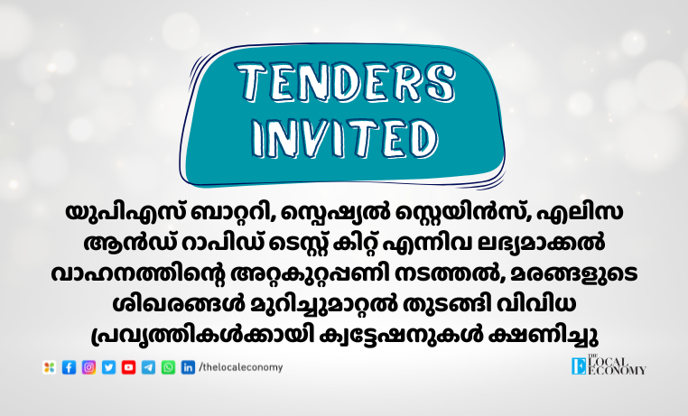 ഏറ്റുമാനൂർ അഡീഷണൽ ശിശുവികസന പദ്ധതി ഓഫീസിന്റെ ഔദ്യോഗിക ആവശ്യത്തിനായി ജീപ്പ് / കാർ മാസ വാടകയ്ക്ക് നൽകുവാൻ തയ്യാറുള്ള വ്യക്തികൾ, സ്ഥാപനങ്ങൾ എന്നിവയിൽ നിന്ന് റീടെൻഡർ ക്ഷണിച്ചു. താൽപര്യമുള്ളവർ ഒക്ടോബർ മൂന്ന് രണ്ട് മണിയ്ക്ക് മുൻപായി ടെൻഡർ നൽകണം. അന്നേ ദിവസം ഉച്ചകഴിഞ്ഞ് മൂന്ന് മണിയ്ക്ക് ടെൻഡർ തുറക്കും. ഫോൺ: 0481-2380175?.