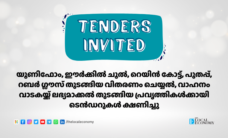 തൂണേരി ശിശു വികസന പദ്ധതി ഓഫീസിന്റെ ആവശ്യത്തിന് നവംബർ മുതൽ ഒരു വർഷത്തേക്ക് ടാക്സി പെർമിറ്റുള്ള വാഹനം (ജീപ്പ്/കാർ) വാടകക്ക് നൽകാൻ ടെണ്ടർ ക്ഷണിച്ചു. ഒക്ടോബർ 23 ഉച്ചക്ക് രണ്ട് വരെ ടെണ്ടർ സ്വീകരിക്കും. ഫോൺ: 6282087812, 9633606296.