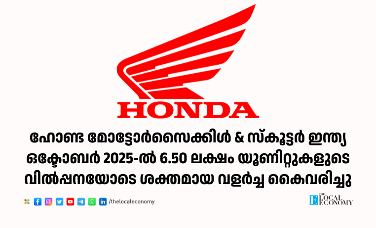 ഹോണ്ട മോട്ടോർസൈക്കിൾ & സ്കൂട്ടർ ഇന്ത്യ ഒക്ടോബർ 2025-ൽ 6.50 ലക്ഷം യൂണിറ്റുകളുടെ വിൽപ്പനയോടെ ശക്തമായ വളർച്ച കൈവരിച്ചു...