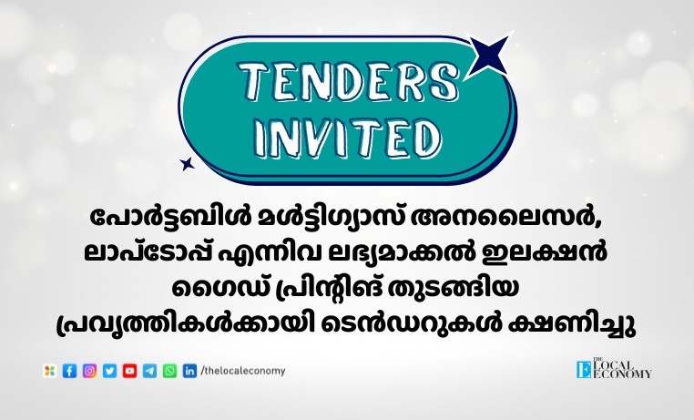 പോർട്ടബിൾ മൾട്ടിഗ്യാസ് അനലൈസർ, ലാപ്ടോപ്പ് എന്നിവ ലഭ്യമാക്കൽ ഇലക്ഷൻ ഗൈഡ് പ്രിന്റിങ് തുടങ്ങിയ പ്രവൃത്തികൾക്കായി ടെൻഡറുകൾ ക്ഷണിച്ചു...