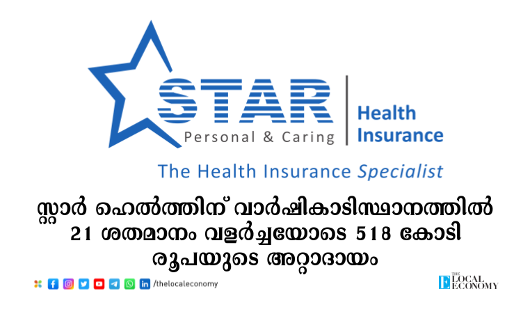 സ്റ്റാർ ഹെൽത്തിന് വാർഷികാടിസ്ഥാനത്തിൽ 21 ശതമാനം വളർച്ചയോടെ 518 കോടി രൂപയുടെ അറ്റാദായം...