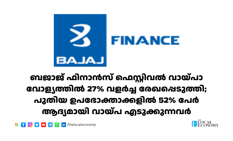 ബജാജ് ഫിനാൻസ് ഫെസ്റ്റിവൽ വായ്പാ വോള്യത്തിൽ 27% വളർച്ച രേഖപ്പെടുത്തി; പുതിയ ഉപഭോക്താക്കളിൽ 52% പേർ ആദ്യമായി വായ്പ എടുക്കുന്നവർ...