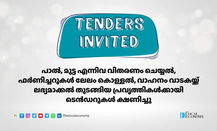 പാൽ, മുട്ട എന്നിവ വിതരണം ചെയ്യൽ, ഫർണിച്ചറുകൾ ലേലം കൊള്ളൽ, വാഹനം വാടകയ്ക്ക് ലഭ്യമാക്കൽ തുടങ്ങിയ പ്രവൃത്തികൾക്കായി ടെൻഡറുകൾ ക്ഷണിച്ചു...