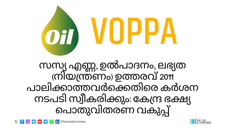 സസ്യ എണ്ണ, ഉൽപാദനം, ലഭ്യത (നിയന്ത്രണം) ഉത്തരവ് 2011 പാലിക്കാത്തവർക്കെതിരെ കർശന നടപടി സ്വീകരിക്കും: കേന്ദ്ര ഭക്ഷ്യ-പൊതുവിതരണ വകുപ്പ്...