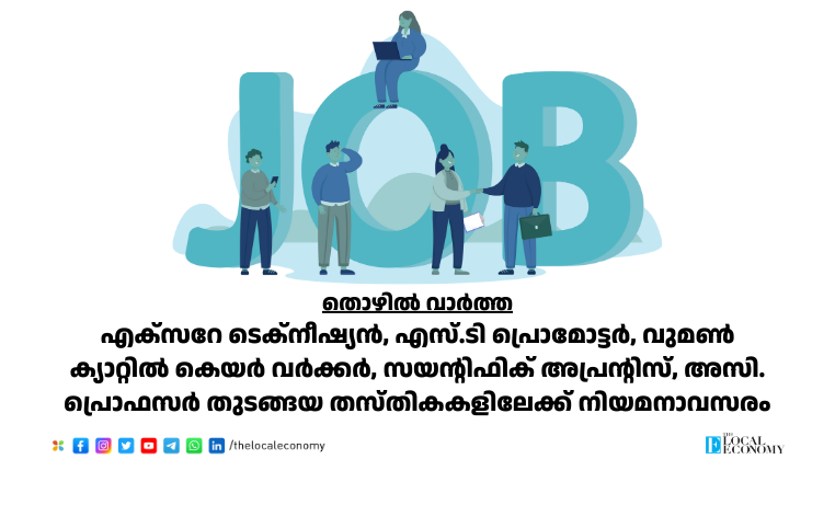 എക്സറേ ടെക്നീഷ്യൻ, എസ്.ടി പ്രൊമോട്ടർ, വുമൺ ക്യാറ്റിൽ കെയർ വർക്കർ, സയന്റിഫിക് അപ്രന്റിസ്, അസി. പ്രൊഫസർ തുടങ്ങയ തസ്തികകളിലേക്ക് നിയമനാവസരം...
